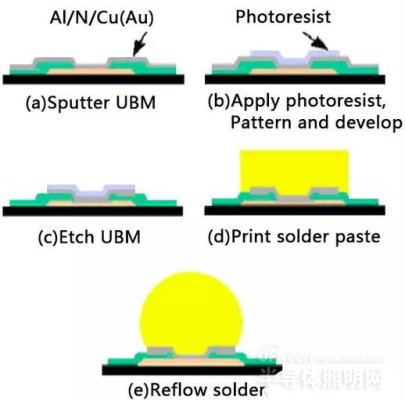 金属凸点的制作,最重要的是凸点厚度(即高度)的控制;对于合金凸点,还需要精确控制合金凸点的组分,因为合金组分直接决定了金属凸点的熔点,对于后面的焊接工艺至关重要。
