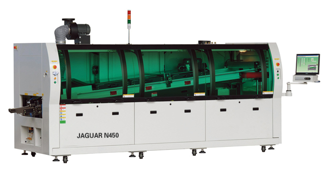 在插件组装(Direct Insertion Process)制程中,捷豹的波峰焊接(Wave Soldering)工艺设备在产能和效率方面一直处于领先地位。捷豹N系列波峰焊能有效的应对各种无铅焊接。