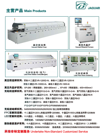 深圳市捷豹自动化设备有限公司一直以来专注于研发、生产、销售、服务为一体的国家高新技术企业。捷豹将携新一代 选择性波峰焊 、真空回流焊 惊艳亮相 NEPCON CHINA 展会。真诚的邀请您莅临捷豹自动化的展位,了解设备的技术细节与应用前景。