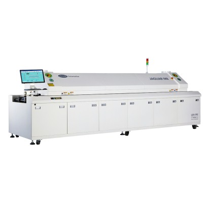 10、 预热区、焊接区和冷却区上下独立加热,独立循环,独立控温,相邻温区温差MAX可达100℃,不串温,每个温区的温度和风速可独立调节。